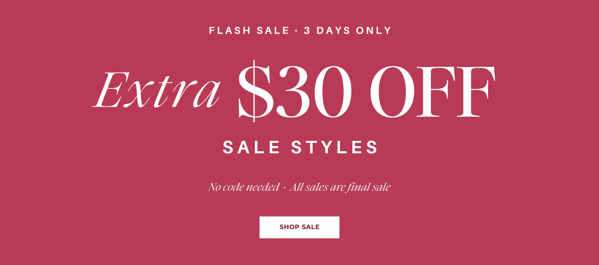 FLASH SALE: EXTRA $30 OFF SALE STYLES