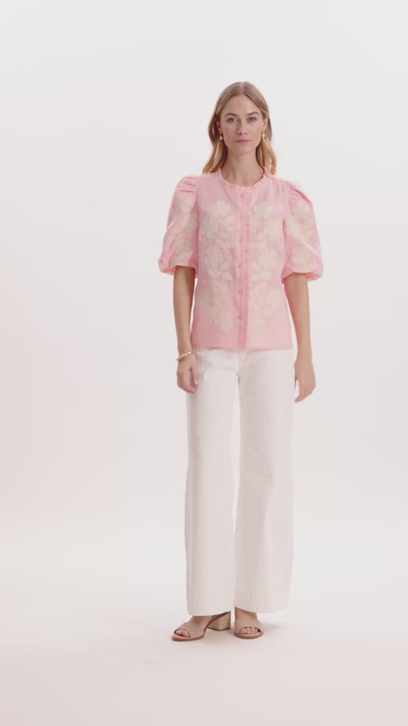 This linen embroidered top is the perfect blend of statement and ease. Crafted in breathable linen, it features tonal floral embroidery that adds texture and a soft, feminine touch throughout. The puff sleeves create a flattering, modern silhouette, while the clean neckline keeps it polished and wearable. Light, airy, and effortlessly chic, this top is ideal for warm days when you want something special that still feels comfortable and easy to wear.