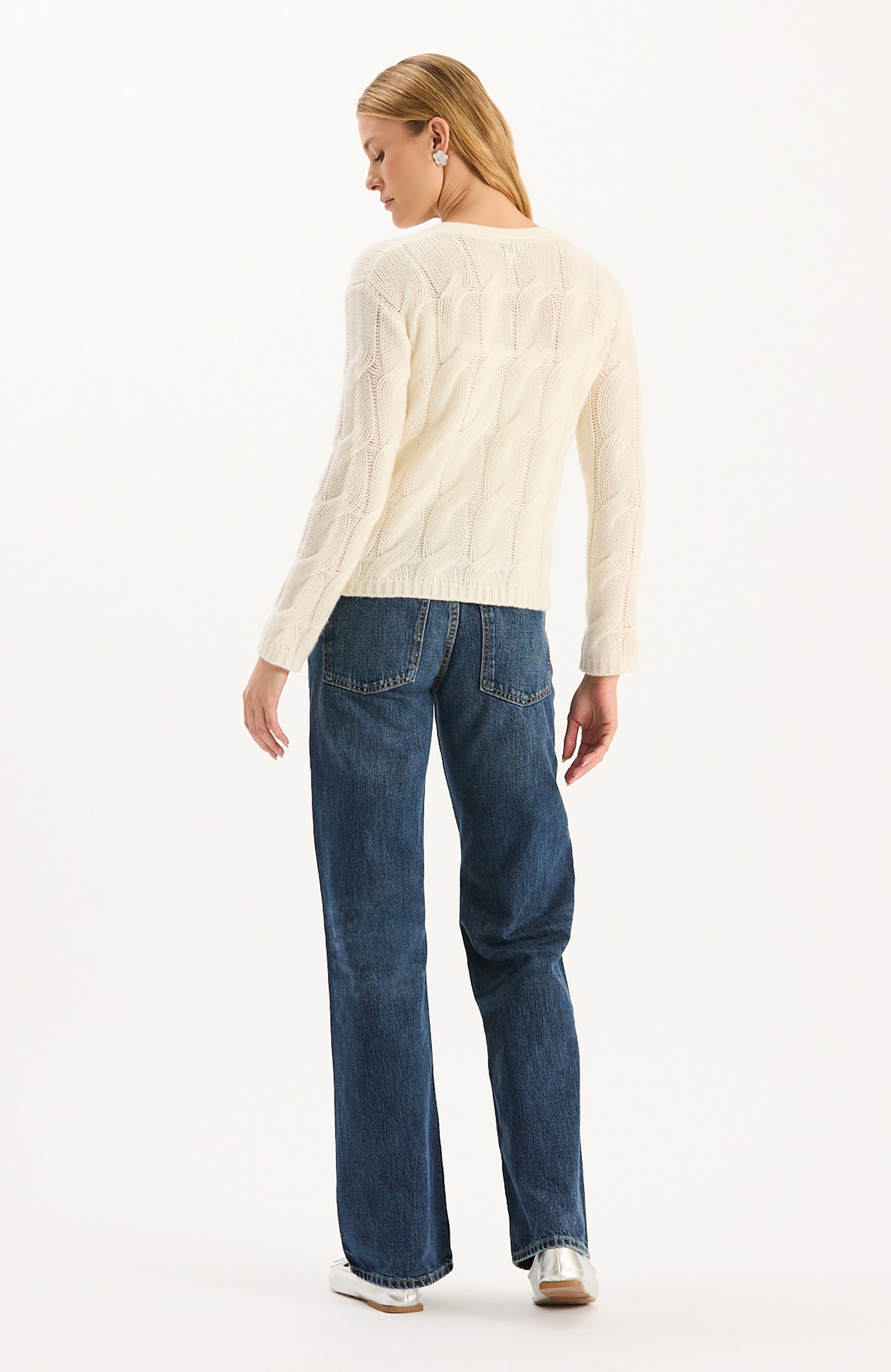 The Cashmere Cable Cardigan is a timeless layering piece that's effortless to wear. Crafted in a soft ivory knit, this cardigan features a classic cable pattern that adds texture and depth. The flattering V-neckline and elegant button-down front bring a refined touch, making it versatile enough for both casual and dressy looks.