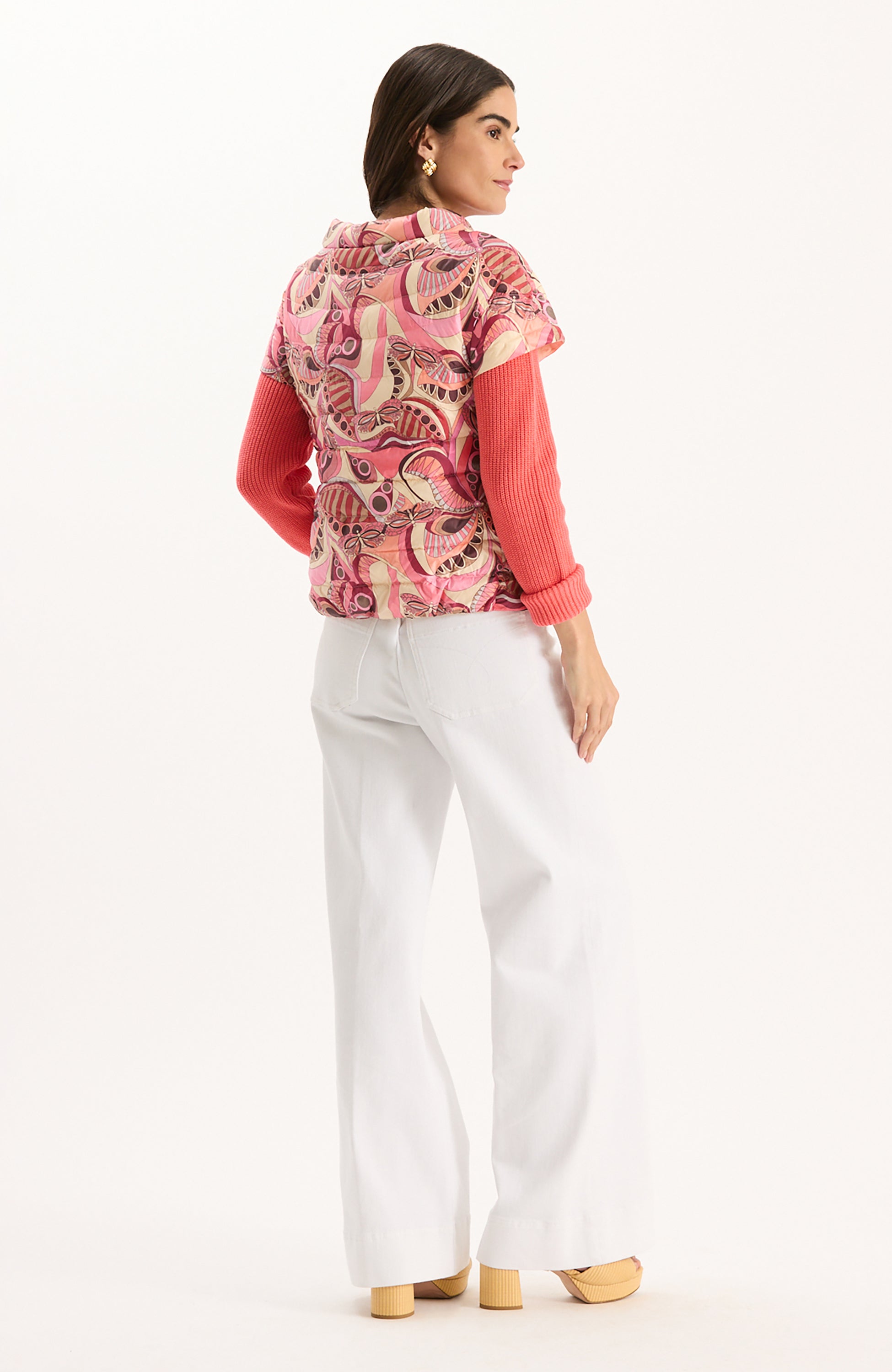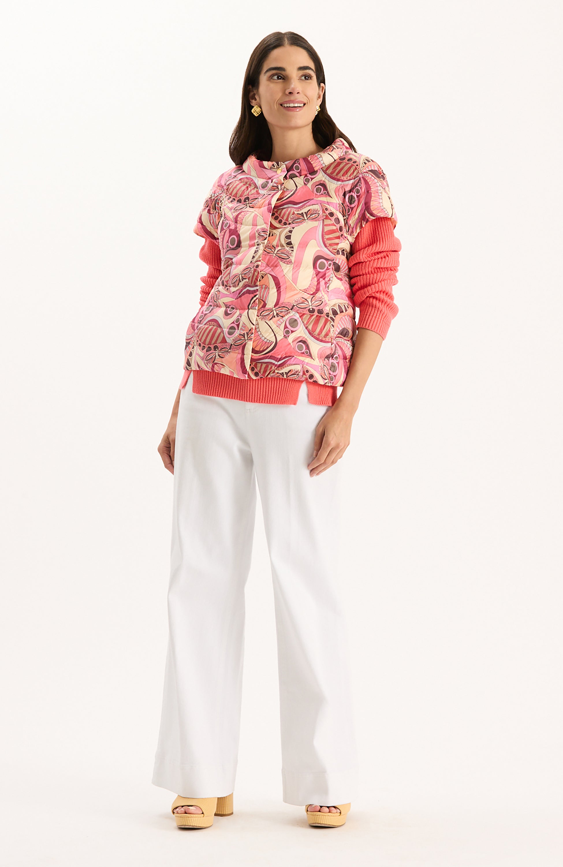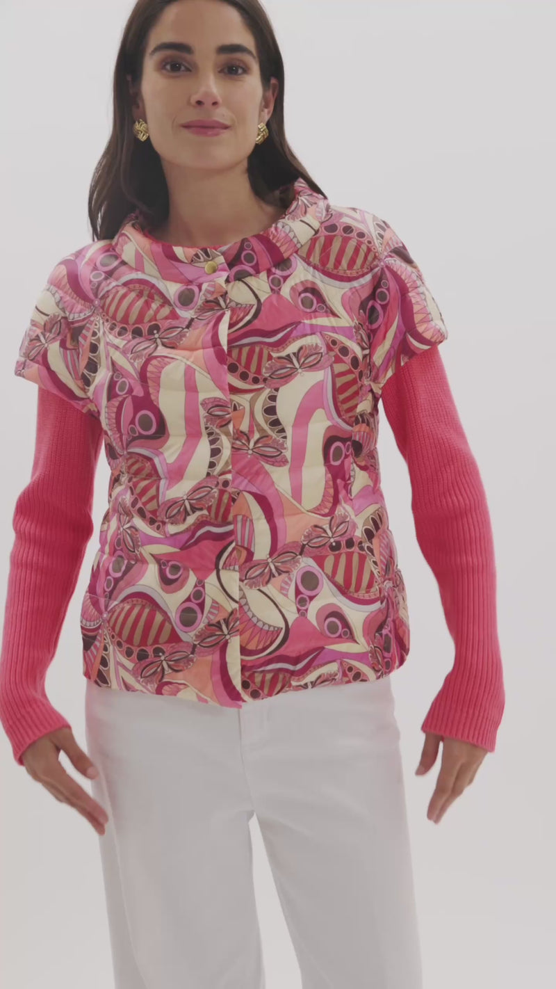 Classic comfort meets contemporary style in this chic quilted vest. Designed with lightweight down filling, it features a flattering fitted silhouette, snap-front closure, and sleek collarless neckline in a vibrant pink print. This versatile piece adds effortless warmth to your transitional wardrobe - layer it with the newest mineral wash sweater for a perfectly matched combination.