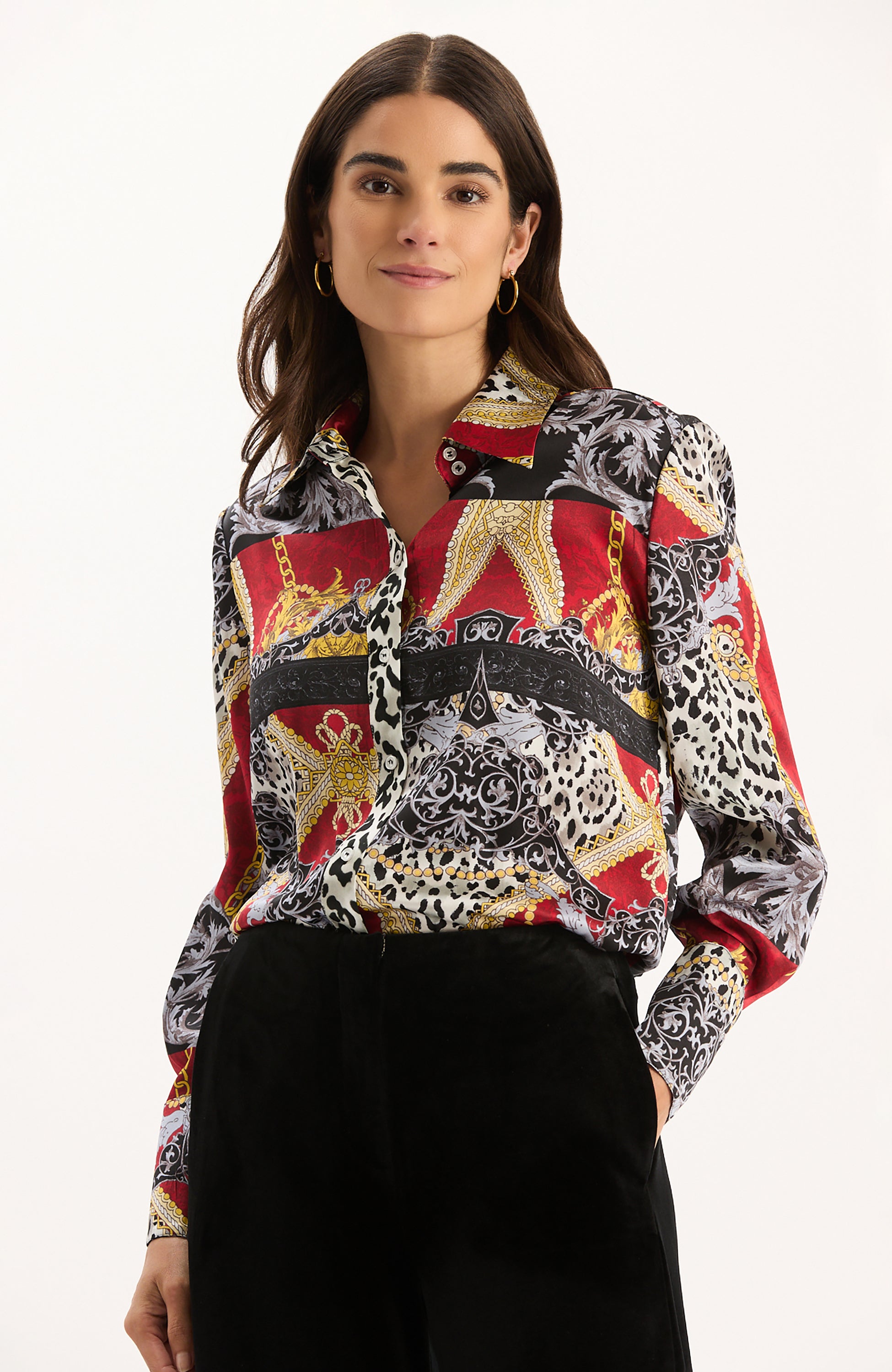 The Chloe Silk Shirt brings instant artistic flair and modern sophistication with its abstract print, classic collar, and relaxed silhouette. Dress it up or keep it casual in this eye-catching statement piece.
