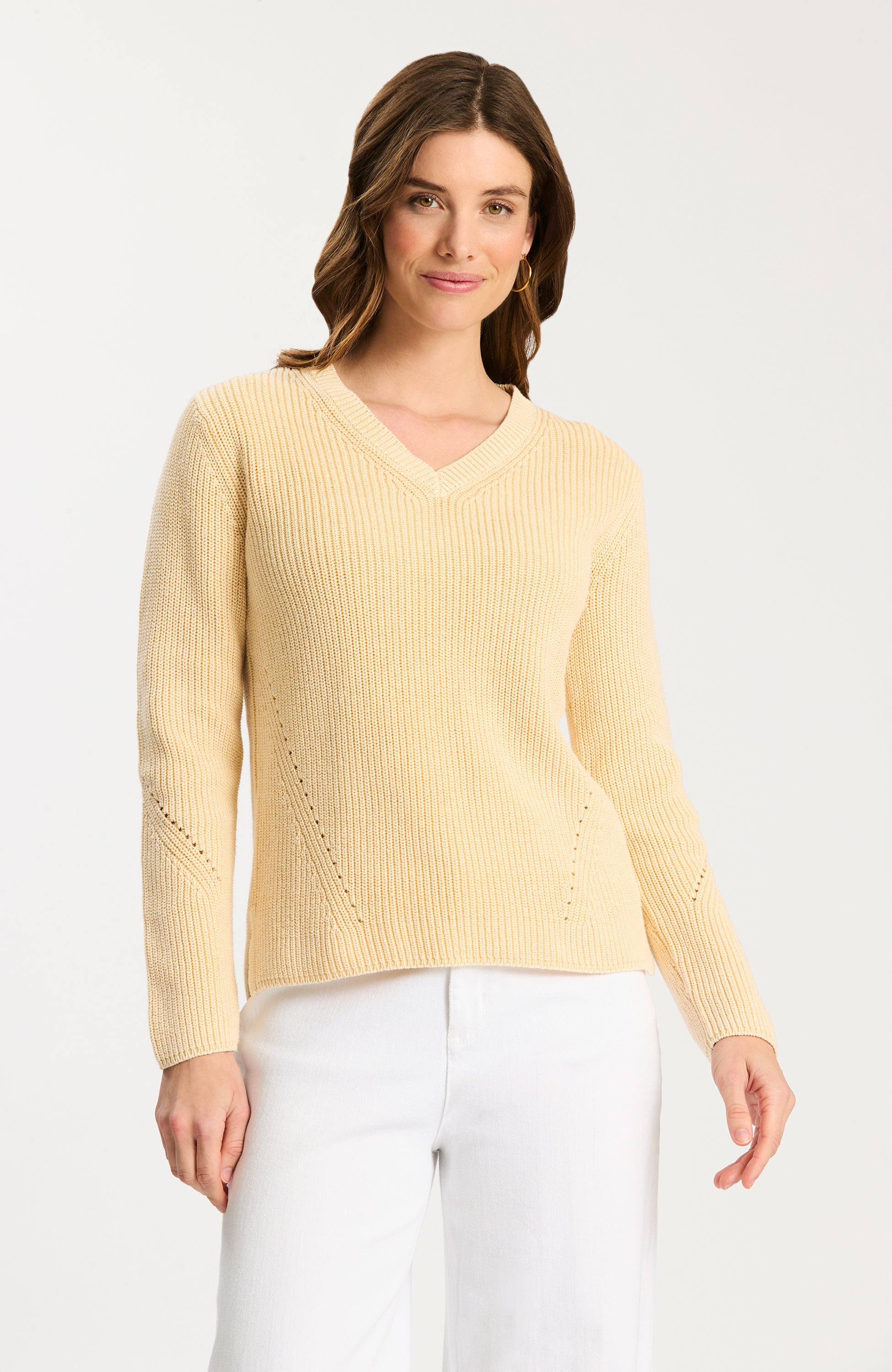 Our best-selling Mineral Wash V-Neck Sweater returns in fresh new-season shades. Crafted from 100% organic cotton, each piece is finished with our signature mineral wash for a one-of-a-kind, vintage look. Lightweight yet cozy with a relaxed fit and classic V-neckline, it’s the perfect throw-on layer — over a tank, under a blazer, or worn solo for effortless everyday polish. This is the staple you’ll reach for on repeat.