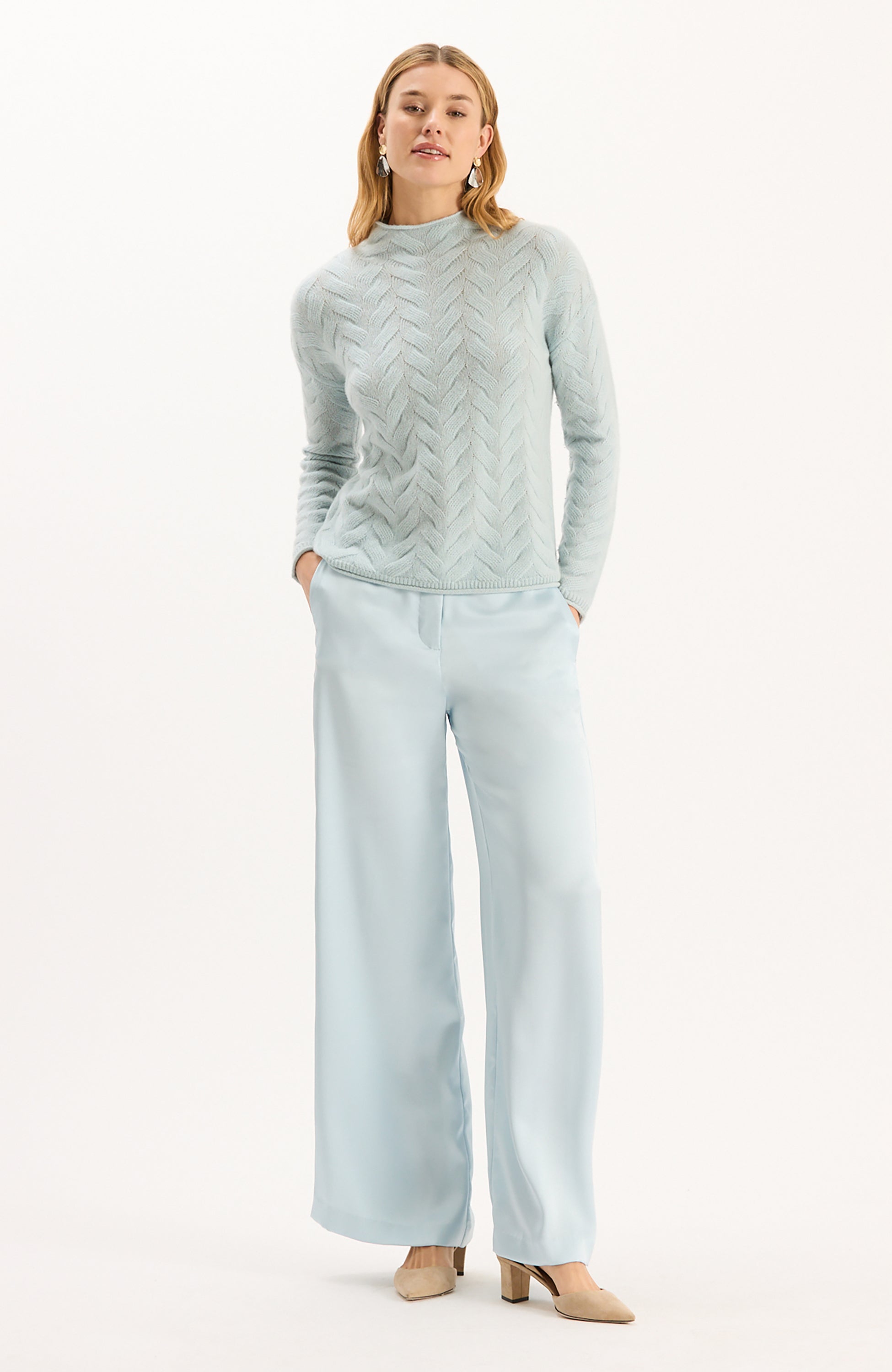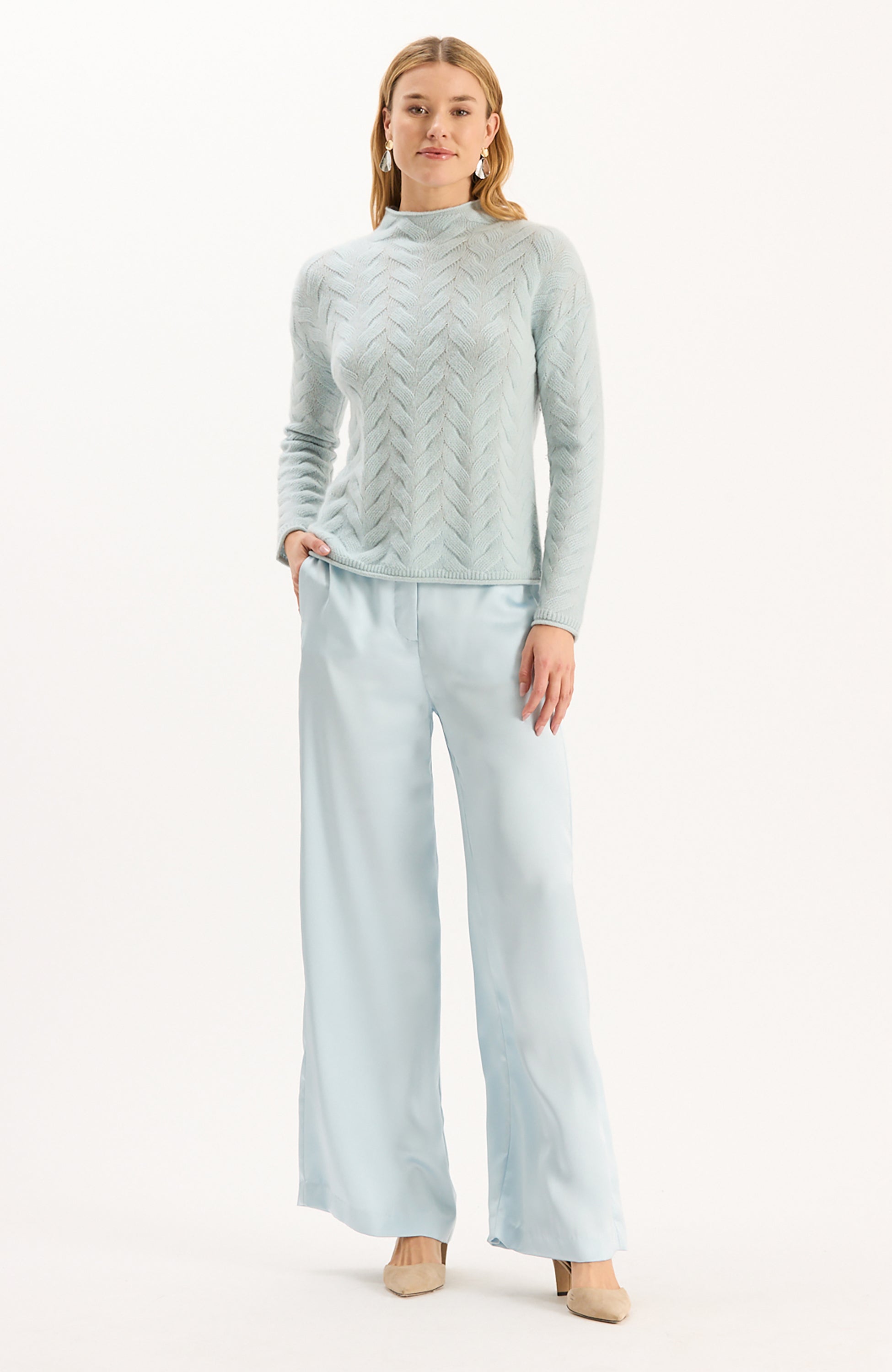 Introducing an updated version of our best-selling Kathy Pant now in a silky charmeuse fabric. Sleek, modern, and effortlessly elegant, this pant s a wardrobe staple designed for both comfort and sophistication. These pants feature a smooth, lustrous finish that drapes beautifully, creating a polished silhouette. The wide-leg cut elongates the figure, while the high waist provides a flattering and versatile fit.